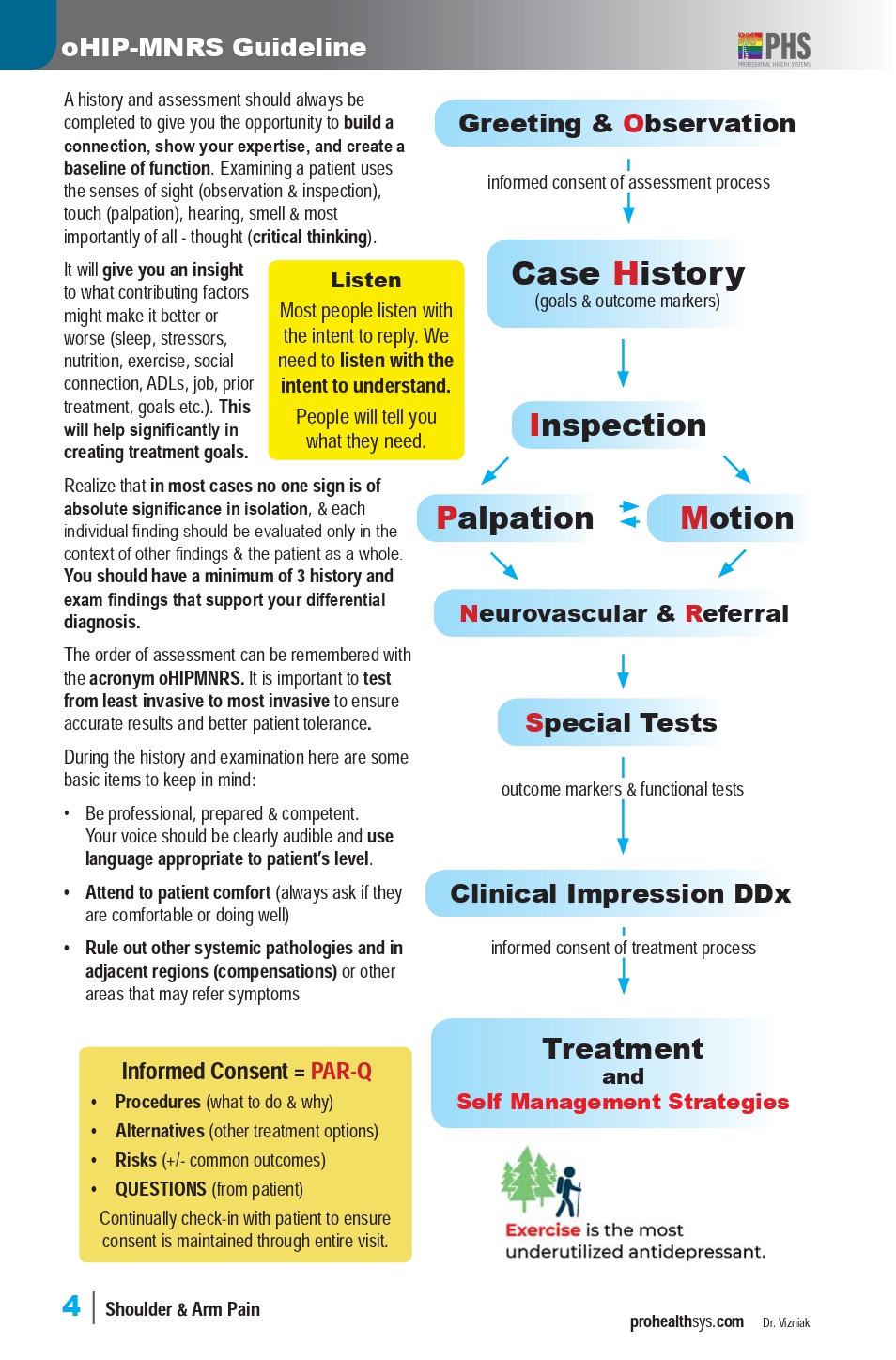 • Actions: Treatment, exercise, follow-up, and referrals